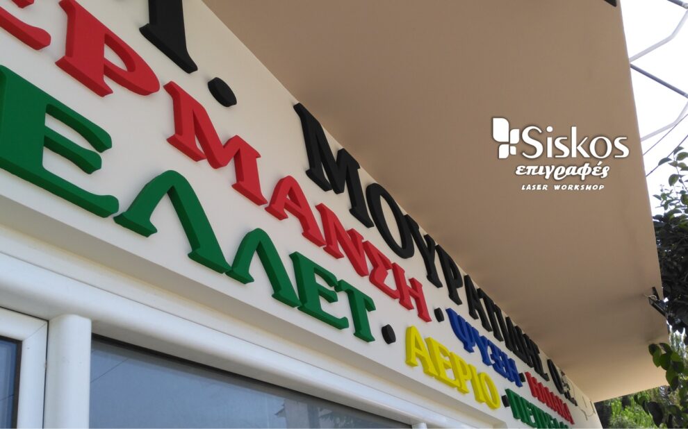 Επιγραφές τρισδιάστατα γράμματα από πλεξιγκλάς με φωτισμό led, Εσωτερικές ταπετσαρίες γραφείων και αυτοκόλλητα βιτρίνας.